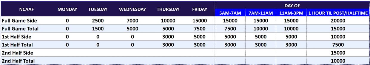 1) Numbers provided are based on games played on Saturday. Games played on other days will have their liquidity adjusted accordingly. The section in blue refers to day of pricing.